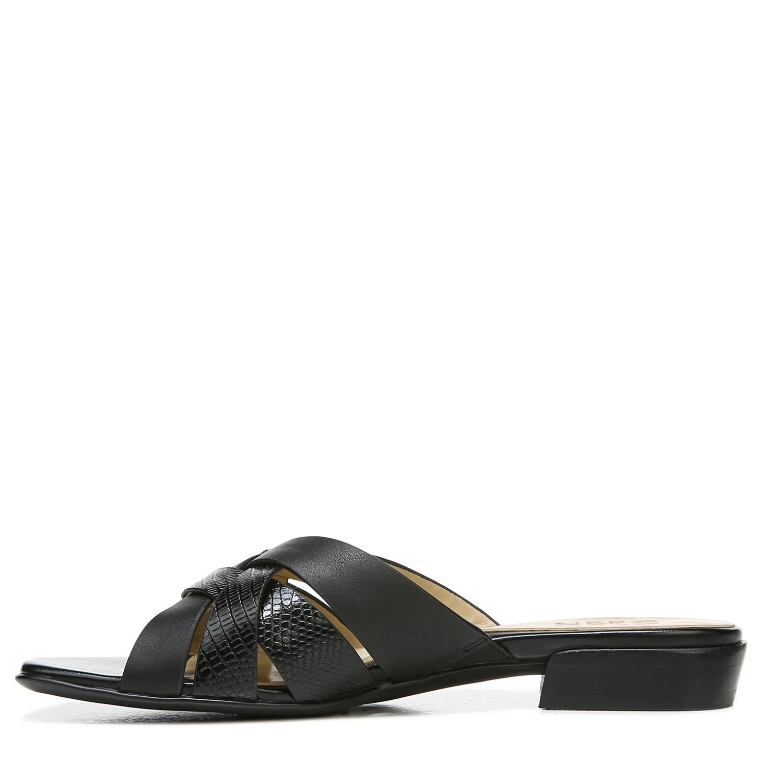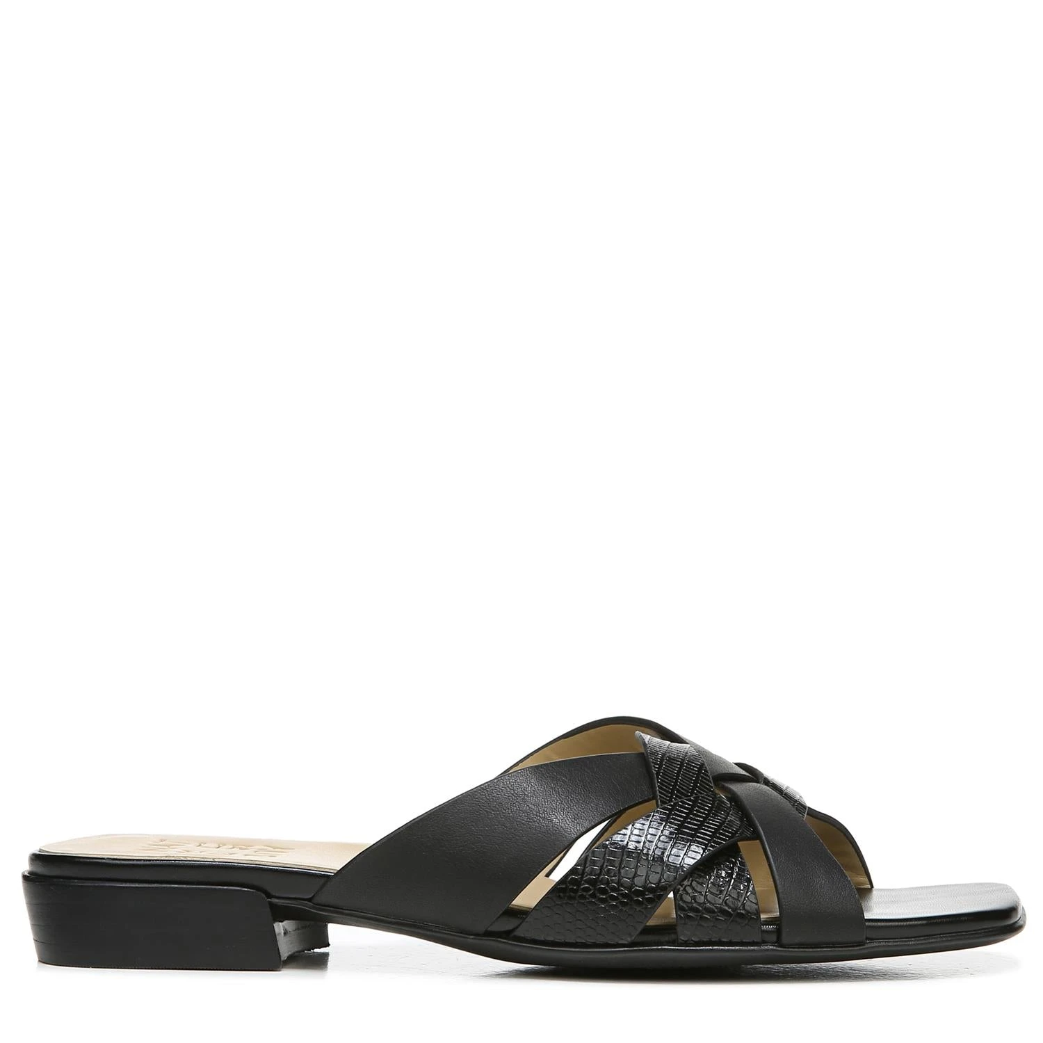 Ease into the weekend comfortably. Interwoven straps add minimal style to this slide sandal with maximum comfort, a squared-off toe and a low block heel. Wear what moves you. Minimal slide sandal with interwoven straps and square toe. Leather upper with a squared-off toe. Contour+ technology for a premium fit and all-day comfort experience. Non-slip outsole. 1 1/4″ low block heel. Consciously packaged: 100% of our shoe boxes are made of 80% recycled paper + soy-based ink. Designed using sustainable materials. WHY YOU’LL LOVE IT: Ingenious elegant utility. Everyday styles designed for effortless mixing and comfort that is downright clever. Available in an inclusive size range of tough-to-find sizes and widths for a custom-designed fit and feel for all-day wear. The Shoe With the Beautiful Fit. Since 1927.
