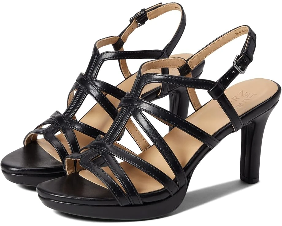 Elevate your contemporary dressy style wearing the Naturalizer® Baylor Heels.SKU: #9437719Strappy man-made upper.Man-made lining.Adjustable buckle strap closure.Open toe.Slightly flared stiletto heel.Non-slip man-made outsole.Imported.Product measurements were taken using size 9, width M (B). Please note that measurements may vary by size.Measurements: