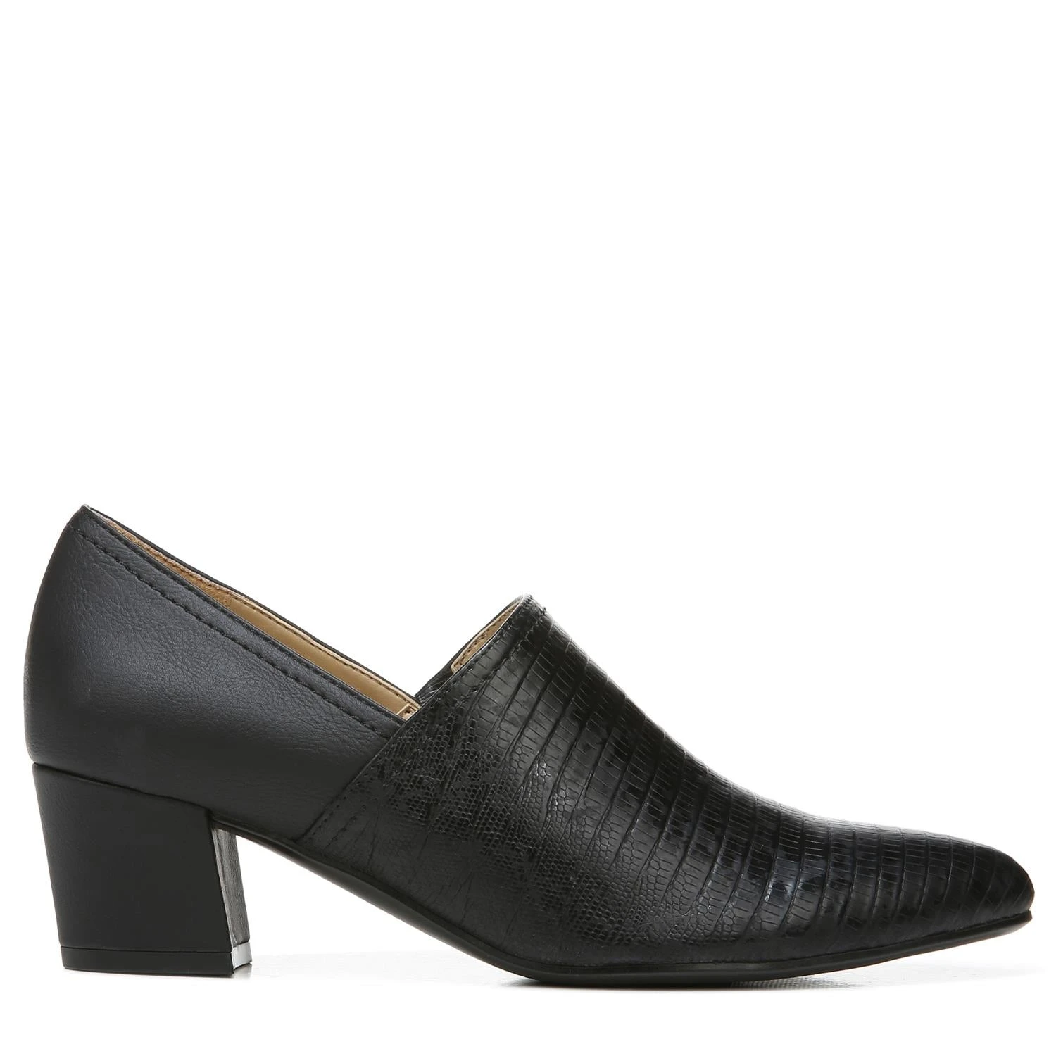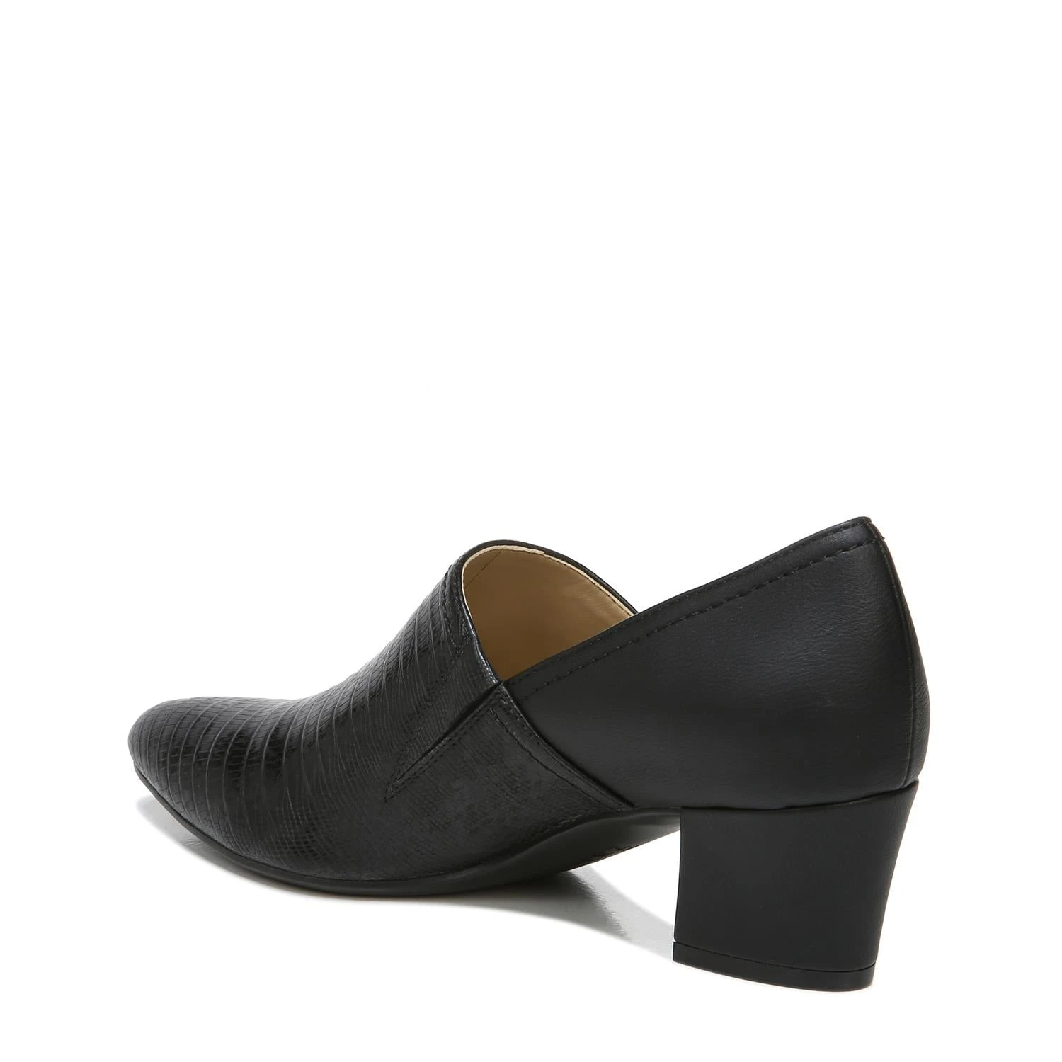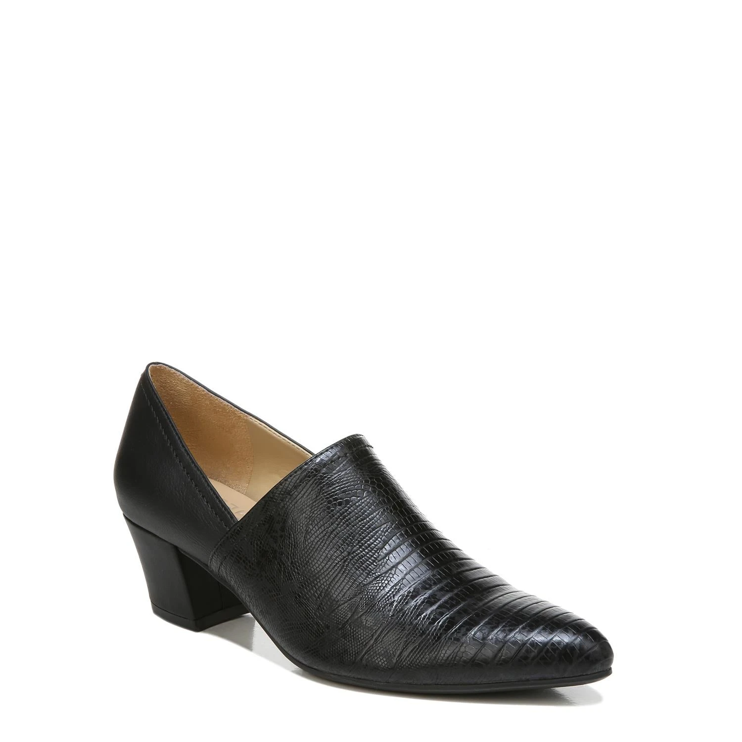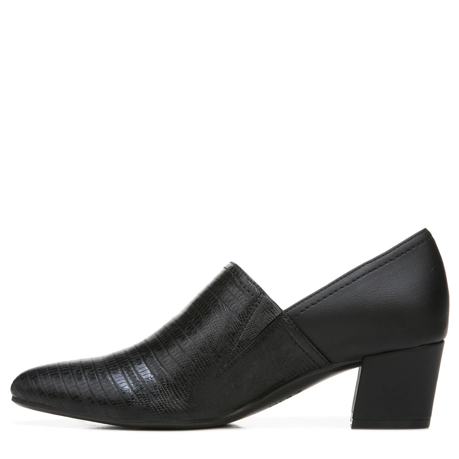 9-5 comfort. You’ll have no trouble comfortably wearing this pointed pump with a covered vamp, slip-on fit and walkable block heel all day long. Get there beautifully. Pointed pump with flexible goring for a slip-on fit. Man Made upper with a pointed toe. Inside goring panel for extra flexibility. Contour+ technology for a premium fit and all-day comfort experience. Non-slip outsole. 2″ angled block heel. Consciously packaged: 100% of our shoe boxes are made of 80% recycled paper + soy-based ink. Designed using sustainable materials. WHY YOU’LL LOVE IT: Ingenious elegant utility. All-day heels that scale the height of chic with endless versatility and comfort that is downright clever. Available in an inclusive size range of tough-to-find sizes and widths for a custom-designed fit and feel for all-day wear. The Shoe With the Beautiful Fit. Since 1927.