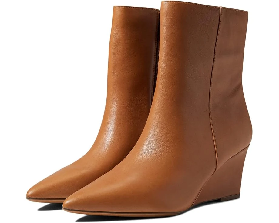 Take your fall-ready look to the next level in the chic Naturalizer® Dario bootie.SKU: #9809569Inside zipper closure.Pointed toe silhouette.Wedge heel.Synthetic linings and Contour+ technology: an innovative cushioning system anatomically sculpted to meet every contour of your foot for a premium fit and all-day comfort experience.Leather upper.Man-made insole.Durable non-slip man-made outsole.Imported.Product measurements were taken using size 9, width M (B). Please note that measurements may vary by size.Measurements: