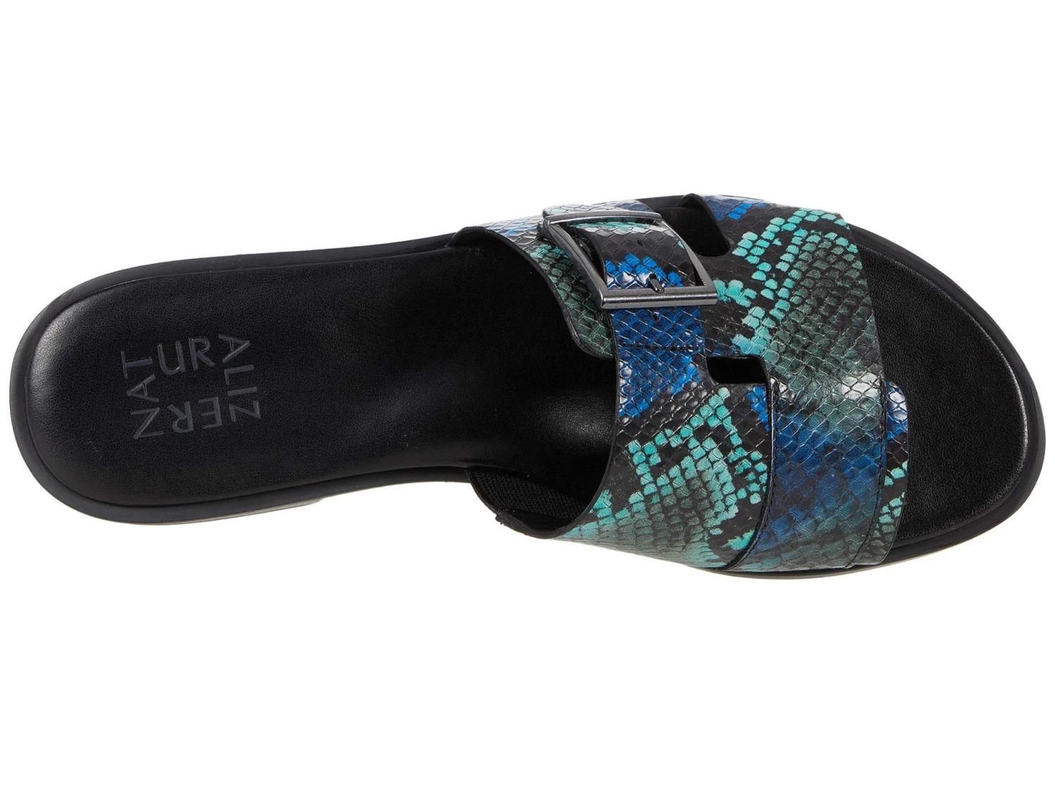 - Naturalizer® Faryn feature straps with an eye catching snake print in a choice of unique colors. Slip on and strap in securely with the showy buckle. Enjoy all day comfort in the contoured footbed that has cooling technology.