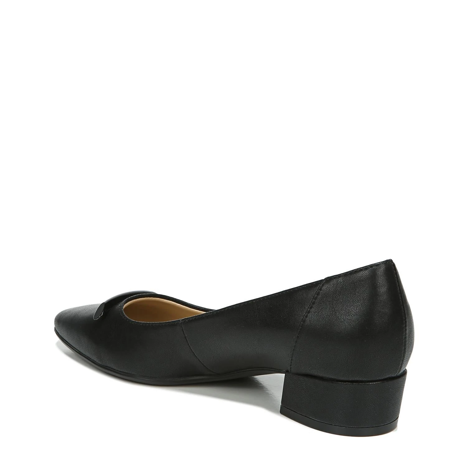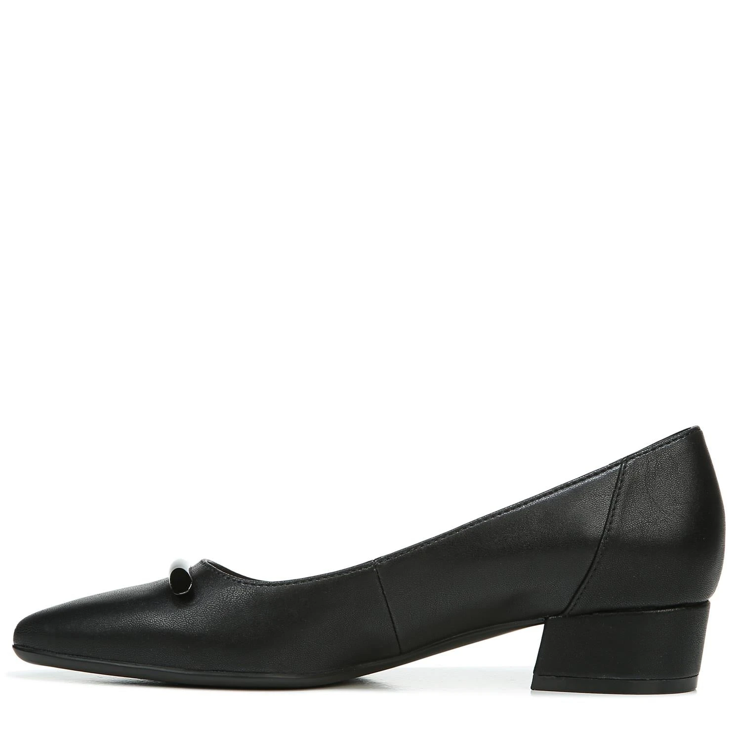 Time for a statement. This comfortable, minimal block heel is always eye-catching with its metallic accent and pointed toe. Get there beautifully. Low block heel with pointed toe. Manmade upper. Slip-on fit. Contour+ technology for a premium fit and all-day comfort experience. Soft fabric lining. Non-slip outsole. 2.5 cm block heel. Consciously packaged: 100% of our shoe boxes are made of 80% recycled paper + soy-based ink. Designed using sustainable materials. WHY YOU’LL LOVE IT: Ingenious elegant utility. All-day heels that scale the height of chic with endless versatility and comfort that is downright clever. Available in an inclusive size range of tough-to-find sizes and widths for a custom-designed fit and feel for all-day wear. The Shoe with the Beautiful Fit. Since 1927.
