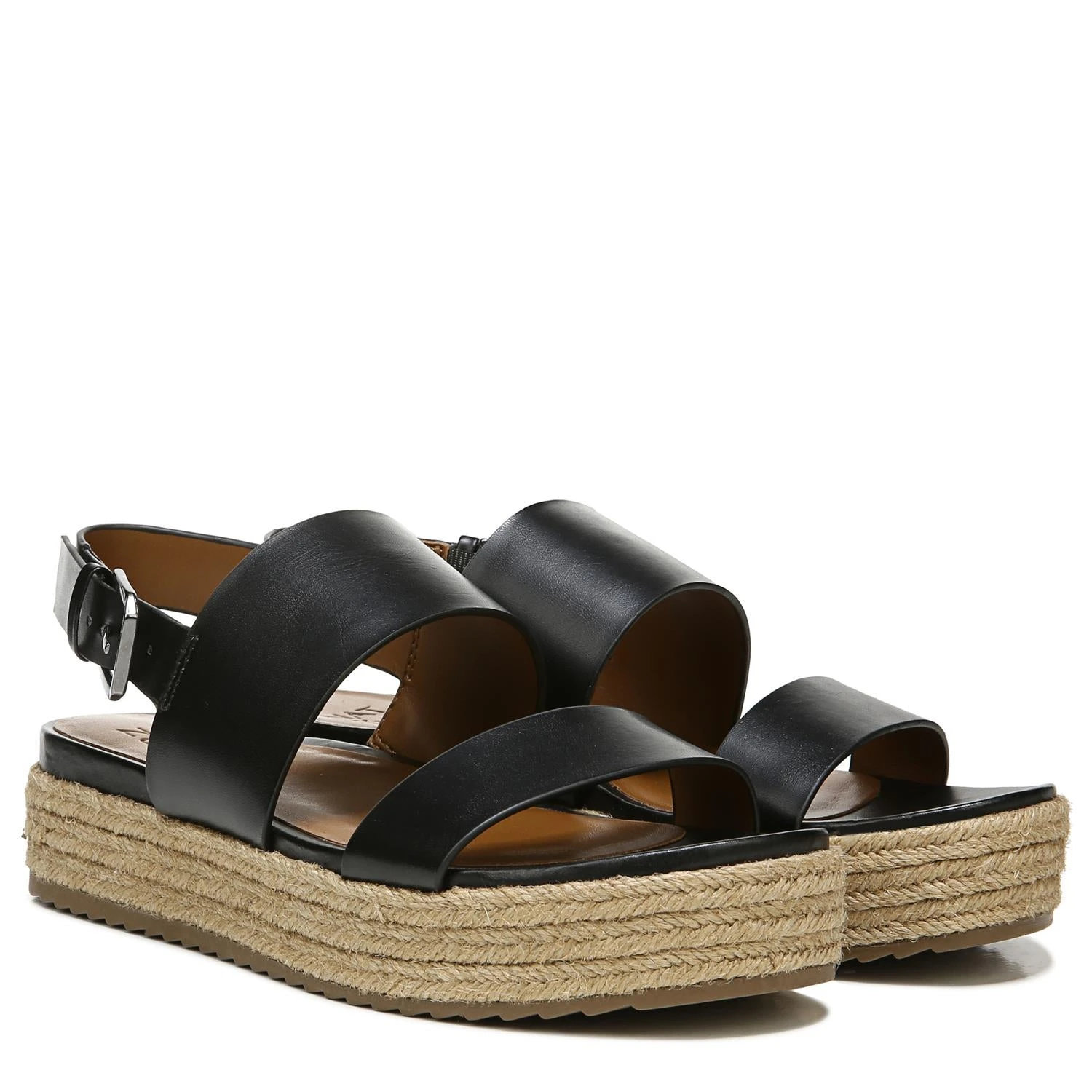 Women’s Naturalizer Patience Medium/Wide Platform Sandal Faux-leather upper in a flatform sandal style. Slip-on entry with adjustable buckle strap at heel. N5 Contour includes a cushioned insole, lightweight components and breathable linings. Synthetic outsole. 1.75″ platform height.