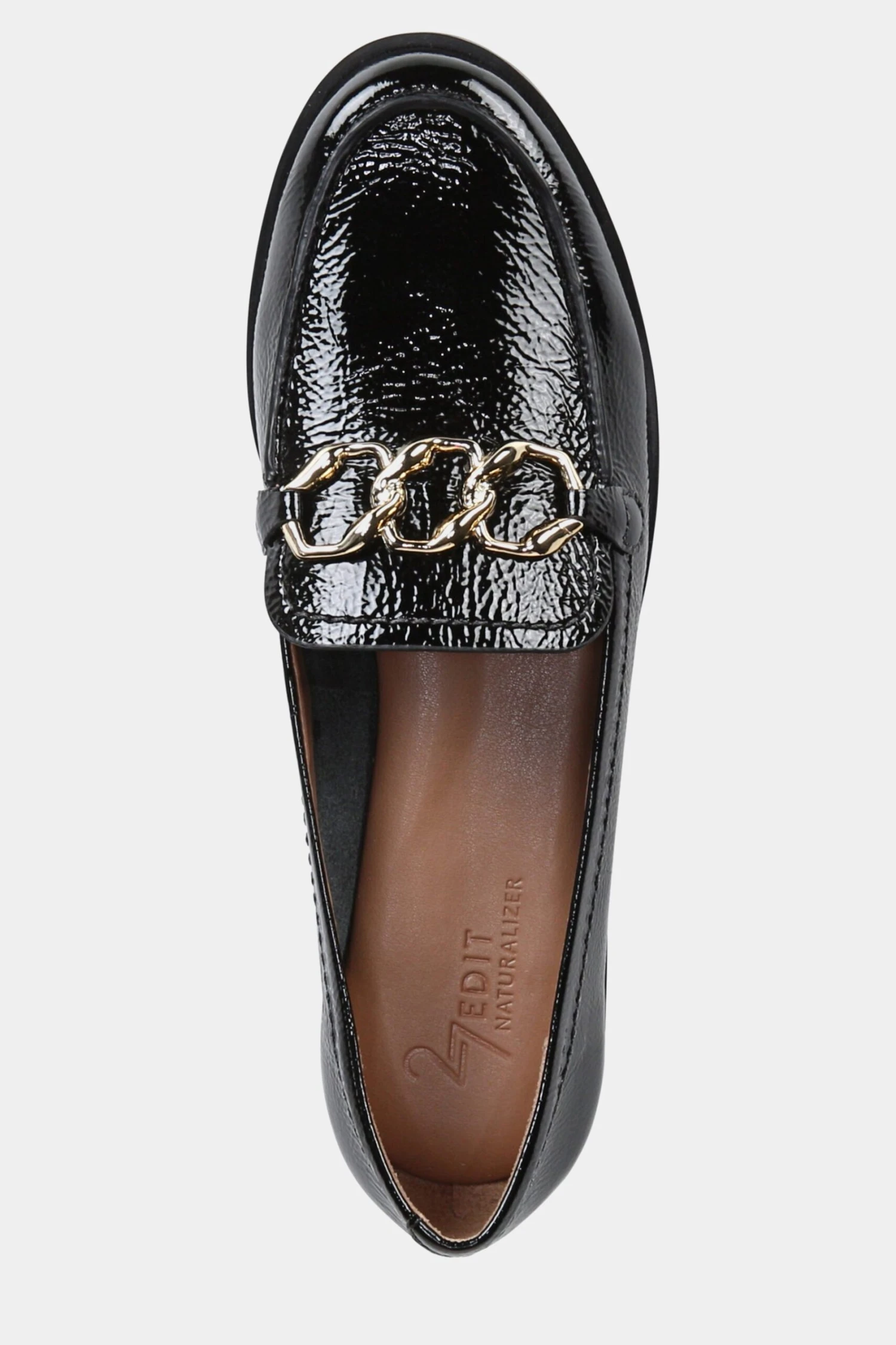 A smart and sophisticated loafer from 27 EDIT Naturalizer stands out above the rest with its metallic horsebit ornamentation and tailored look.